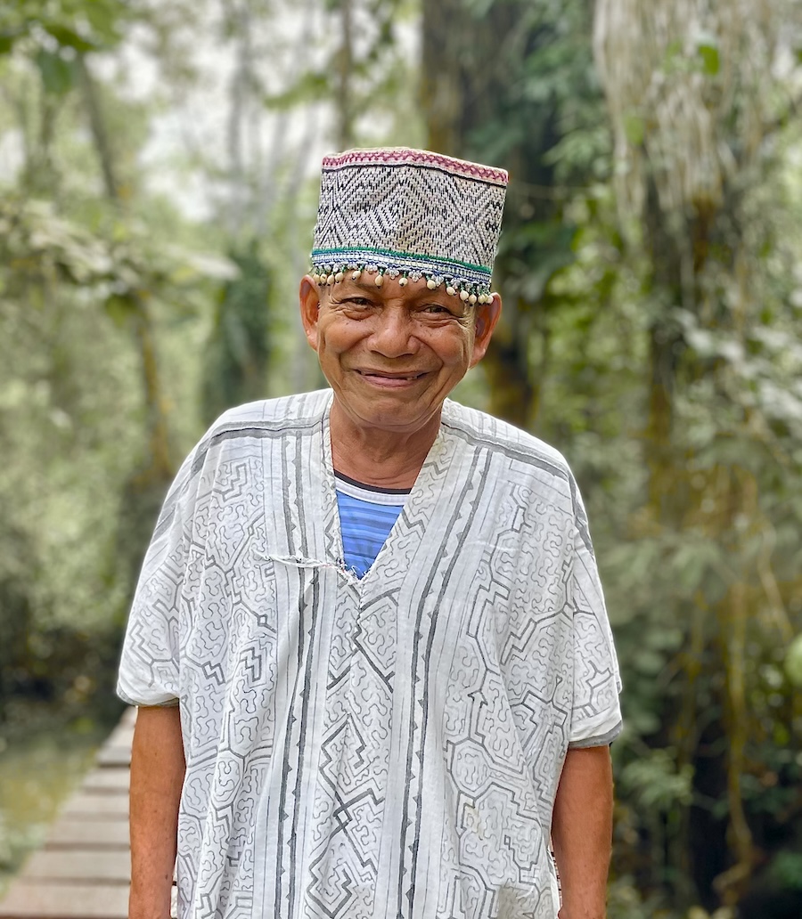 Cecilio is originally from the Shipibo Village of Santa Isabel de Bahuanisho and is also Rosenda’s cousin.  Cecilio is 67 years old and has been working with Ayahuasca and dieting master teacher plants for 32 years. He comes from a lineage of powerful healers in his family. He first apprenticed under his grandfather for many years. Cecilio’s father also apprenticed within their lineage and became a medico, healing people in his community. Cecilio became part of Nimea Kaya family in 2022.  Cecilio and his family also brew the Ayahuasca medicine that is drank by the participants in our retreats. Cecilio’s personal work with each participant in ceremony helps them to release what no longer serves them and to bring more energetic balance and harmony into their lives.